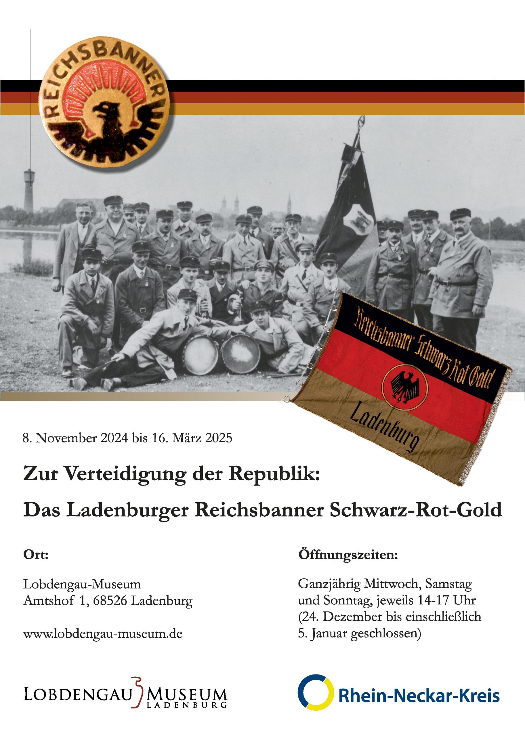 Die Grundlage der Ausstellung bilden die vor den Nationalsozialisten geretteten und heute im Kreisarchiv sowie im Lobdengau-Museum verwahrten Dokumente, Fahnen, Abzeichen und Uniformteile der Ladenburger Ortsgruppe. Die meisten Exponate stammen aus dem Nachlass des Reichsbanner-Mitglieds Willy Gärtner. Sie bieten einen interessanten Einblick in den politischen Alltag Ladenburgs während der Weimarer Republik. Die Ausstellung wird vom 8. November 2024 bis 16. März 2025 gezeigt.